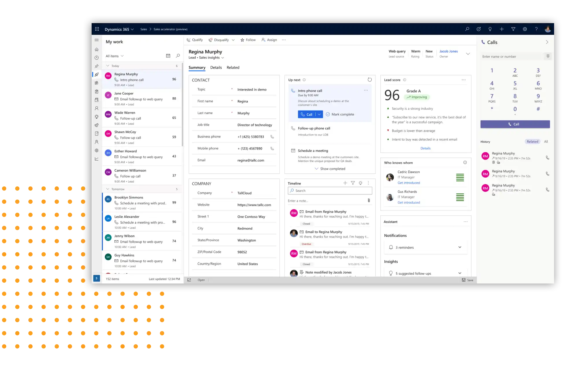 Contextual insights from Dynamics 365 Sales can improve conversion rates, help you win leads and identify customers who are most likely to convert and buy.